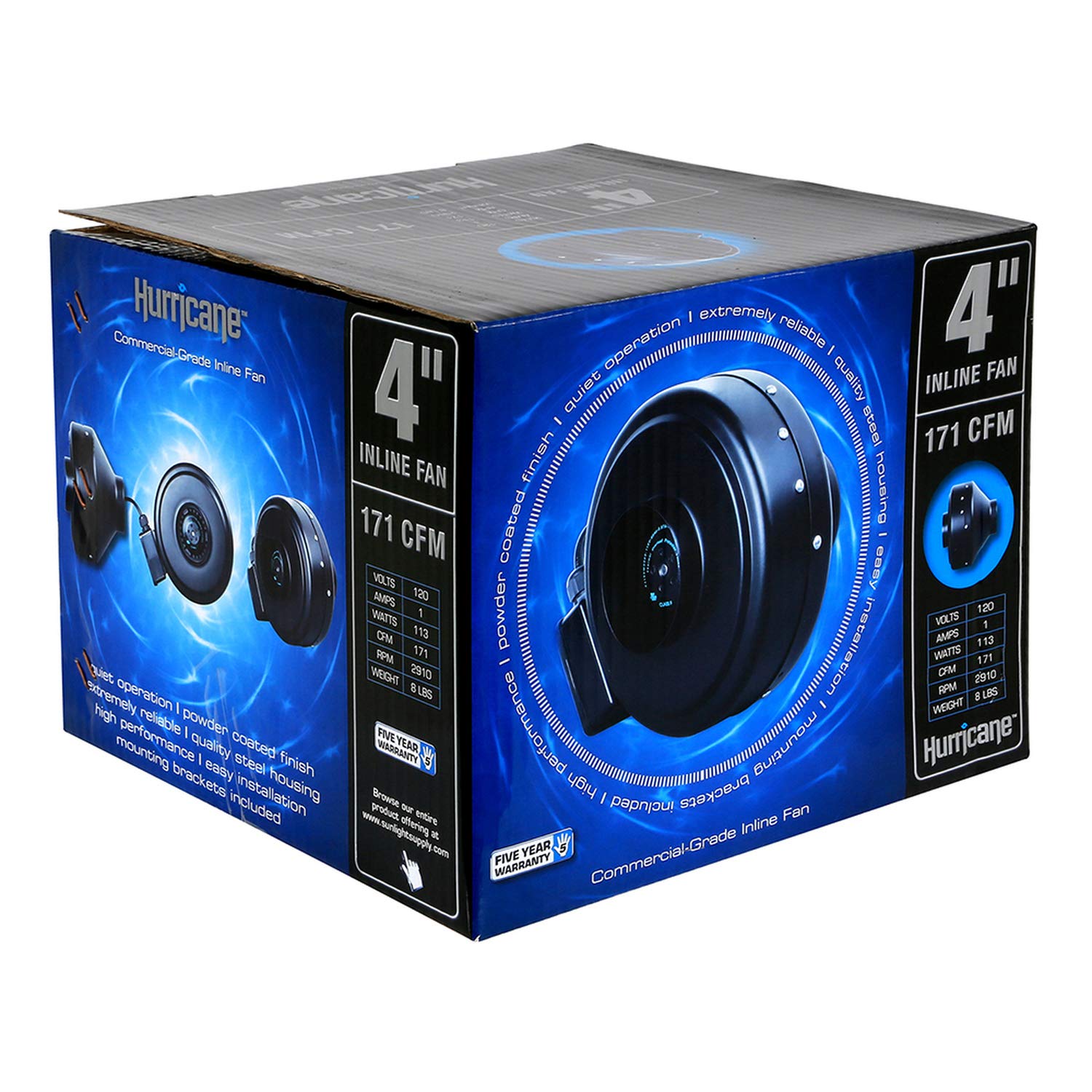 Hurricane Inline Fans are commercial-grade, high-performance fans. The housings are made of steel with a durable powder-coated finish. Made with quality UL components for quiet operation. Includes mounting brackets with easy-to-follow instructions. Easily installs in minutes.