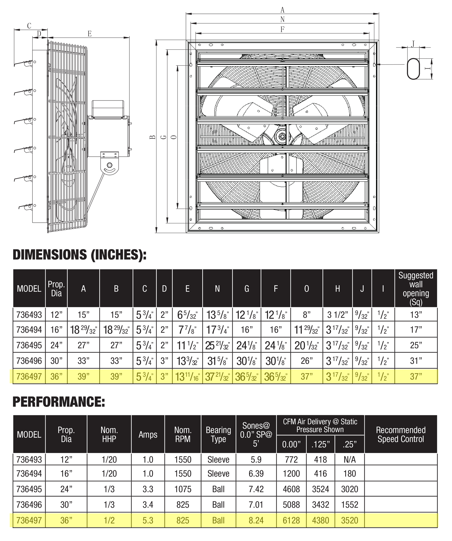 Hurricane® Pro Shutter Exhaust Fans are widely used for ventilating warehouses, stores, factories, workshops, greenhouses and farm buildings. Shutter frames come with pre-punched mounting holes for easy installation. Motors are completely enclosed.