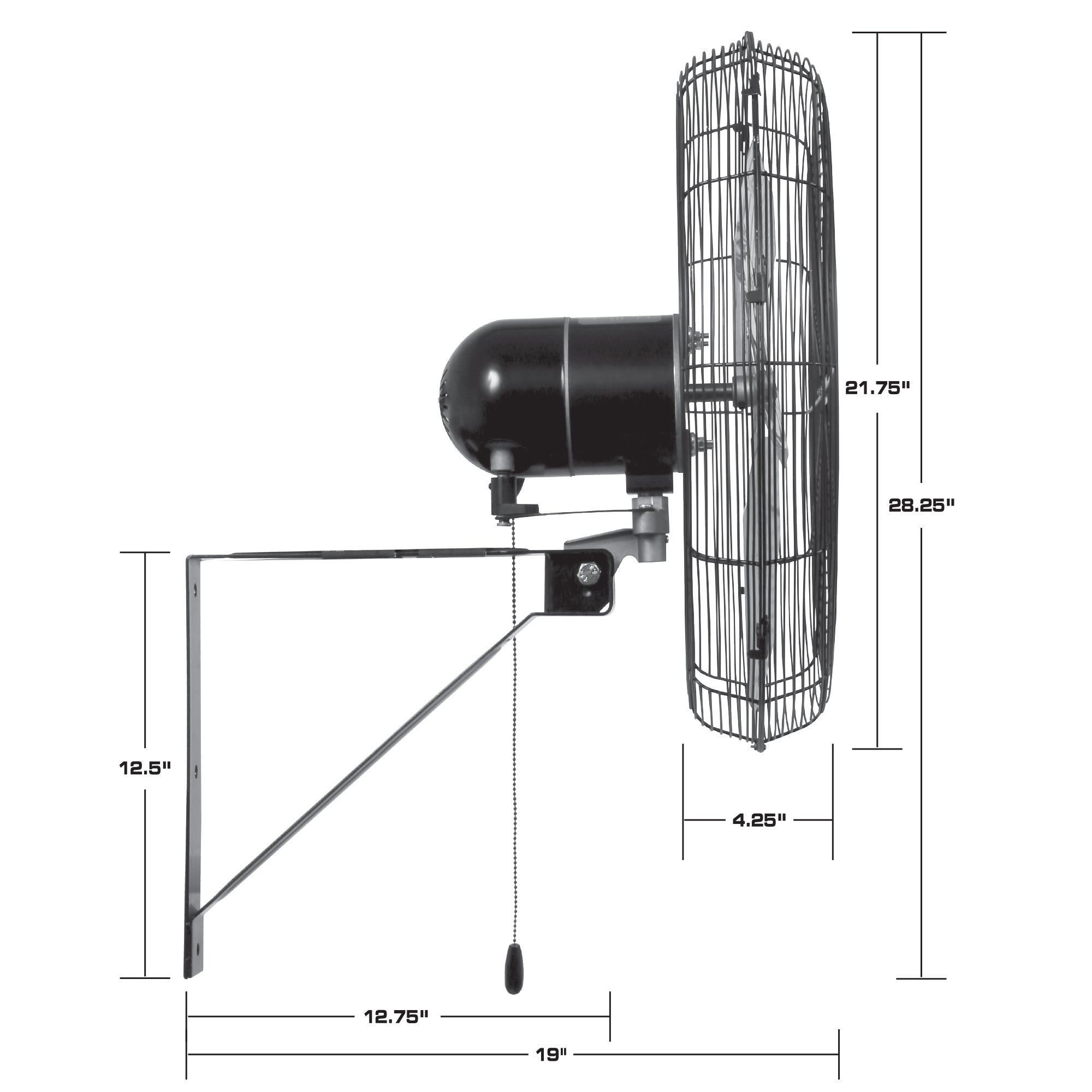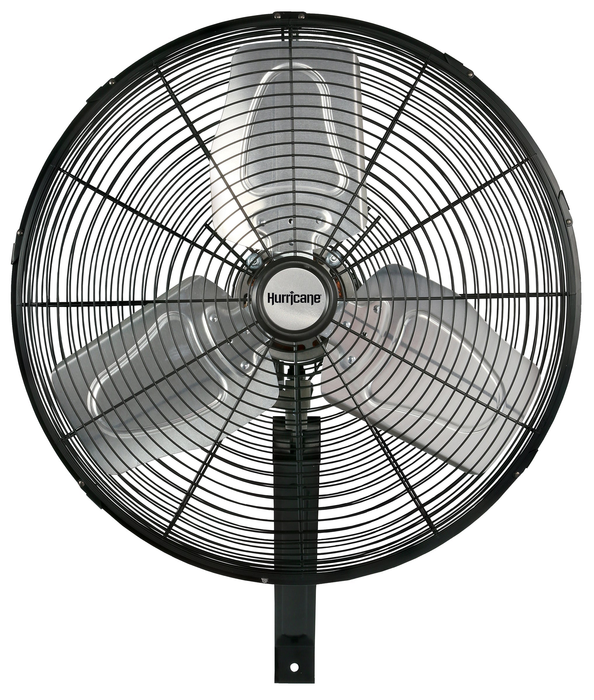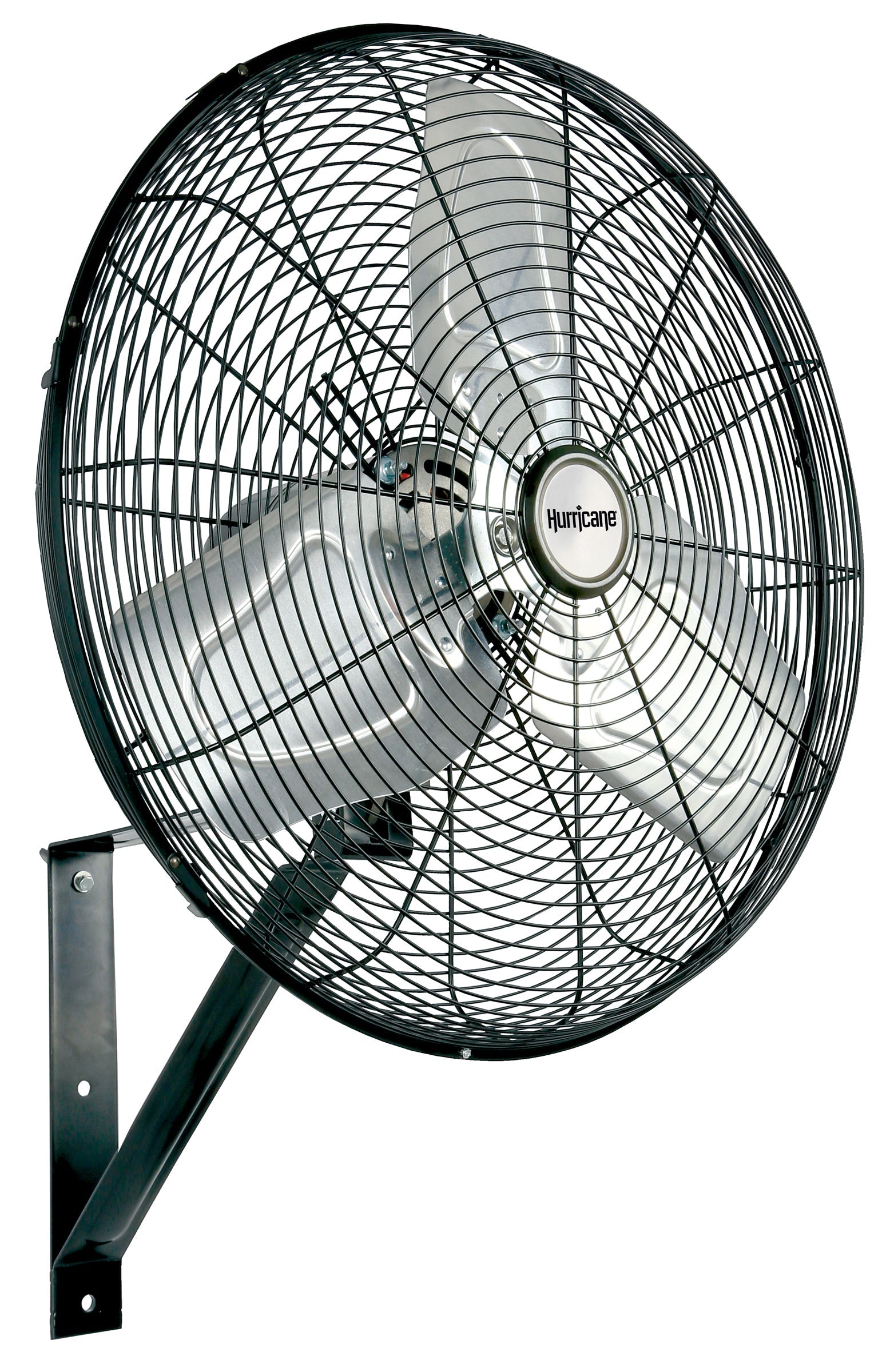 The Hurricane® Pro 20 in Commercial Grade Oscillating Wall Mount Fan is a great space saver. This fan is ideal for homes, greenhouses, garages, workshops and other areas that may need a heavy-duty wall fan. It can be easily mounted with the included heavy-duty wall bracket and hardware. The Hurricane® Pro Wall Mount Oscillating Fan has a thermally protected motor that will automatically shut off should it overheat for any reason. Made of rugged all-metal construction with a black powder-coated finish. The fan blades are made of aluminum. It has 3 speed settings with oscillation controls and adjustable tilt. Runs at 4600 CFM and 1100 RPM. Comes with a 6 ft 120 V power cord.